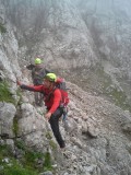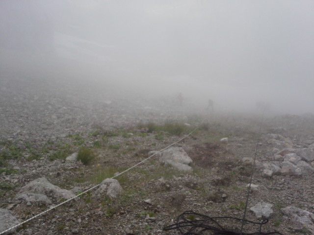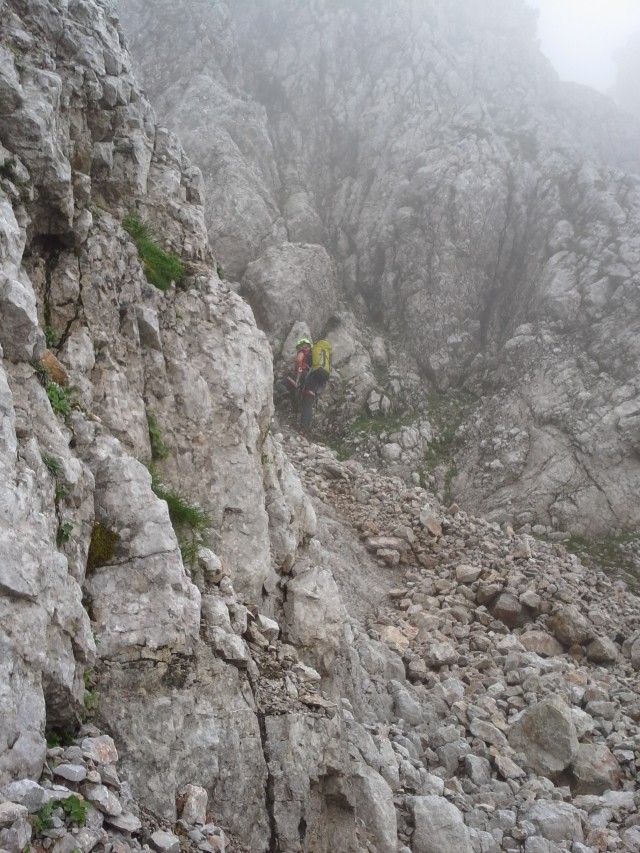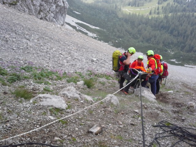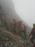 Helikopter zaradi megle oz. nizke oblačnosti ni mogel več pomagati, proti steni smo se prek Ljubelja s strani Zelenice odpravili tržiški gorski reševalci z vso opremo za stensko reševanje. Kljub slabi vidljivosti, zahtevnosti in krušljivosti terena smo s pomočjo reševalca letalca na mestu nesreče dokaj hitro locirali točen položaj - grapa desni Y. Ponesrečenega smo nato transportirali prek stene in po meliščih proti Zelenici, ter naprej v Tržič.